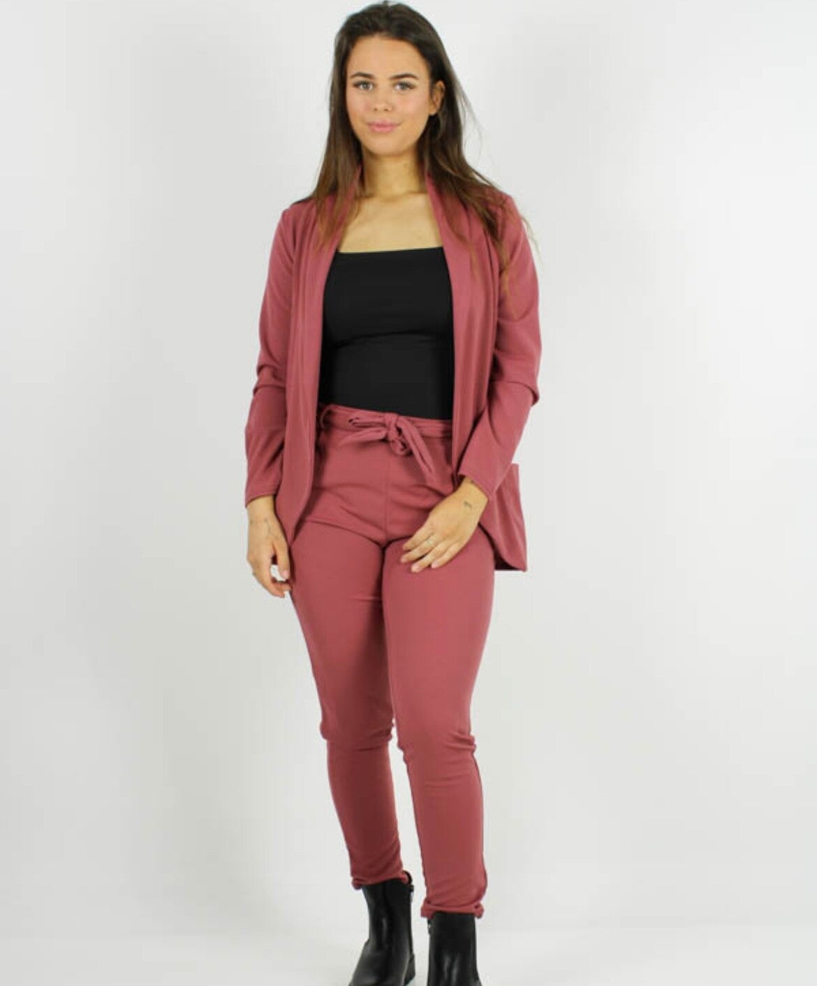 De Blazer en de pantalon hebben aan beide kanten insteekzakken. De achterkant van de pantalon heeft geen zakken.