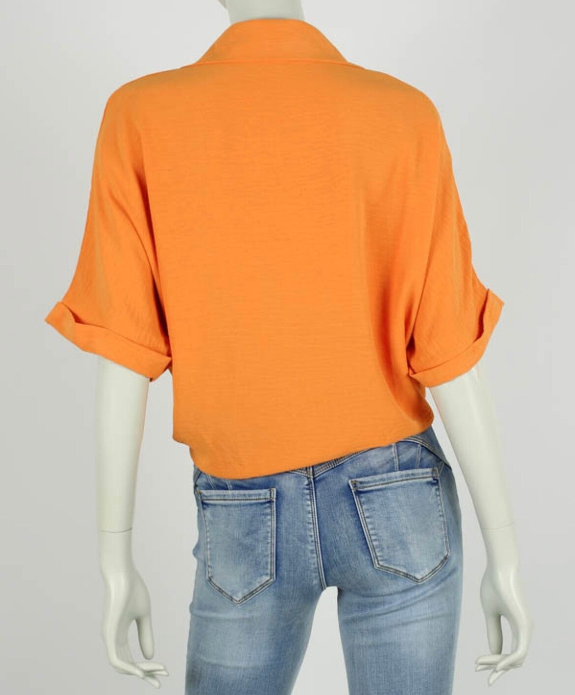 Hoe leuk is deze ruimvallende blouse met korte mouw! Kan aan de onderkant worden geknoopt.