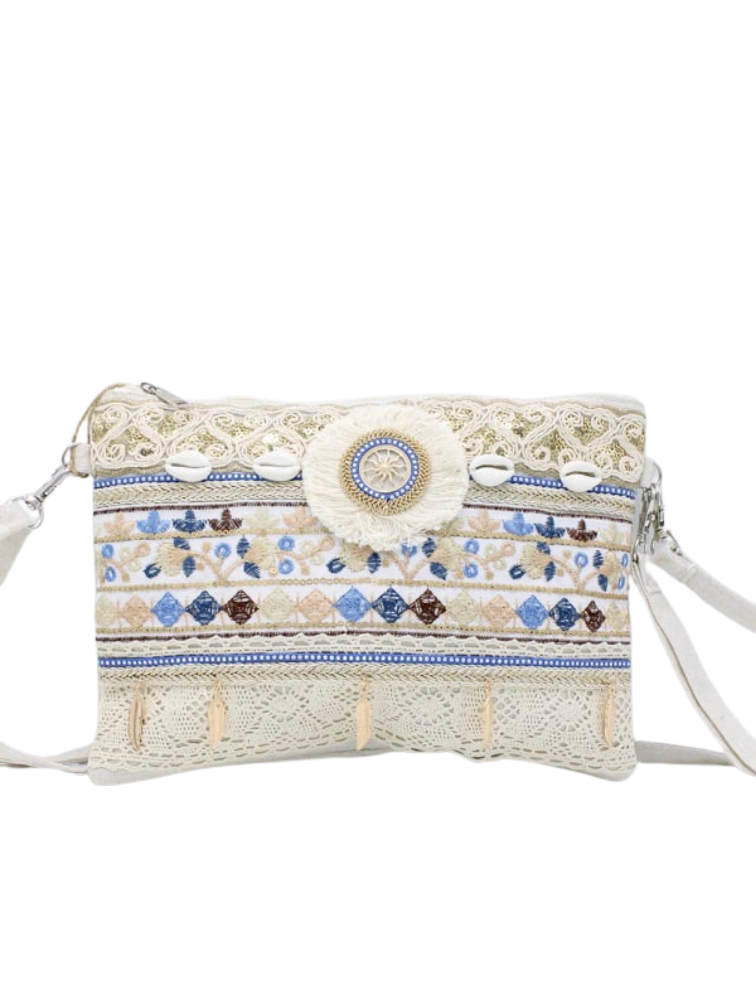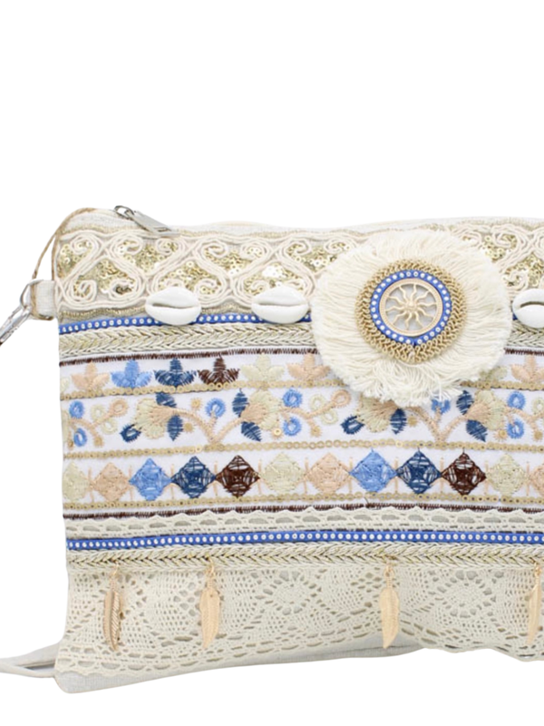 Love deze clutch in beach style! Deze tas heeft schelpjes, details met een gouden afwerking en een shiny look all over.