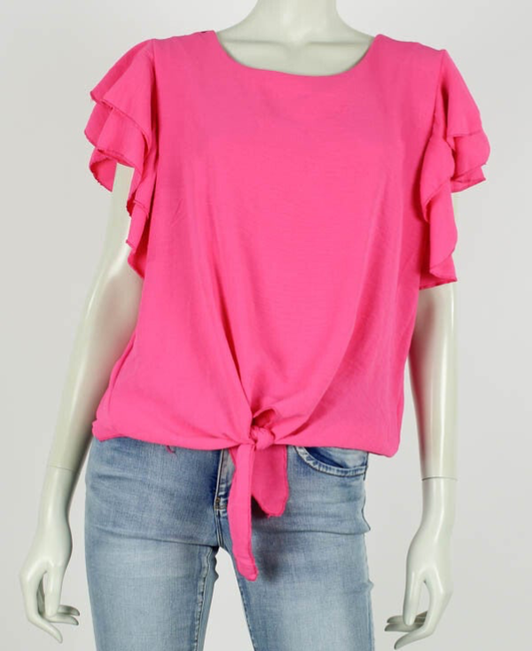 Hoe leuk is deze ruimvallende top met vlindermouw en een knoop aan de onderkant! Deze top is one size en draagbaar t/m maat 42/44