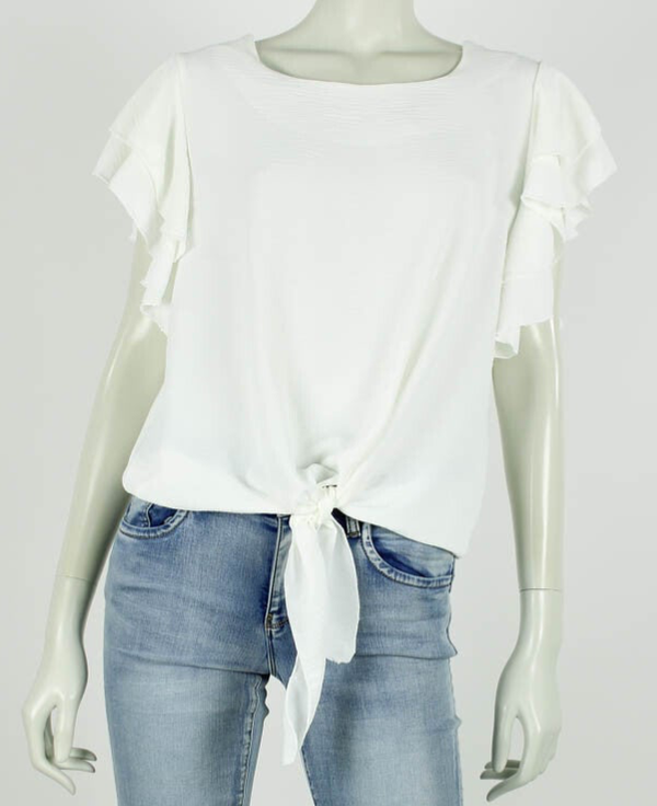 Hoe leuk is deze ruimvallende top met vlindermouw en een knoop aan de onderkant! Deze top is one size en draagbaar t/m maat 42/44