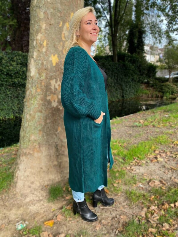 Lang comfortabel vest met 2 zakken in een mooie kleur groen. Dit vest is one size en goed t/m maat 42.