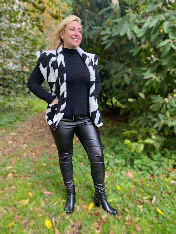 Hoe leuk is deze teddy gilet in een black & white print! Heerlijk comfy en warm. Dit gilet geeft net die extra touch aan jouw outfit!