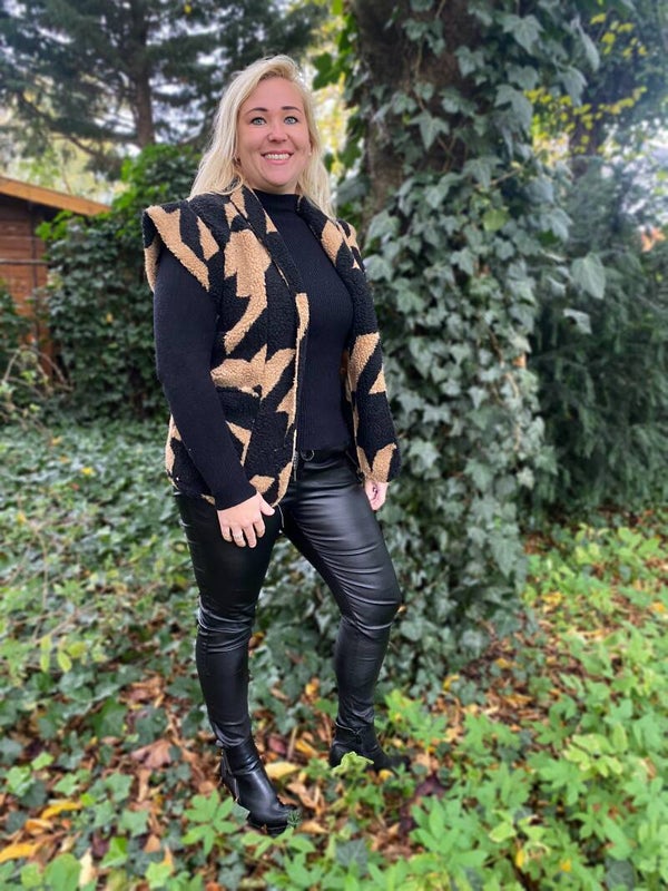 Hoe leuk is deze teddy gilet in een black & camel print! Heerlijk comfy en warm. Dit gilet geeft net die extra touch aan jouw outfit!