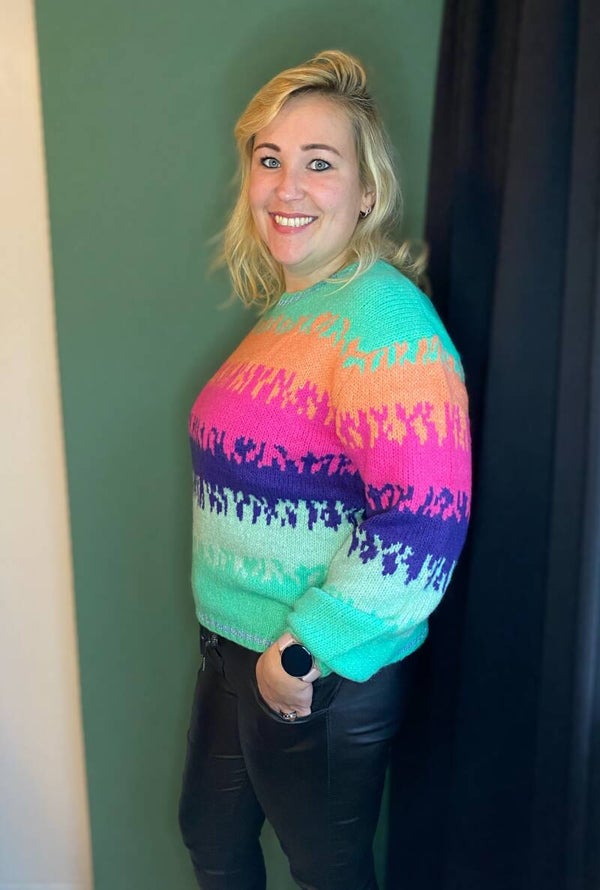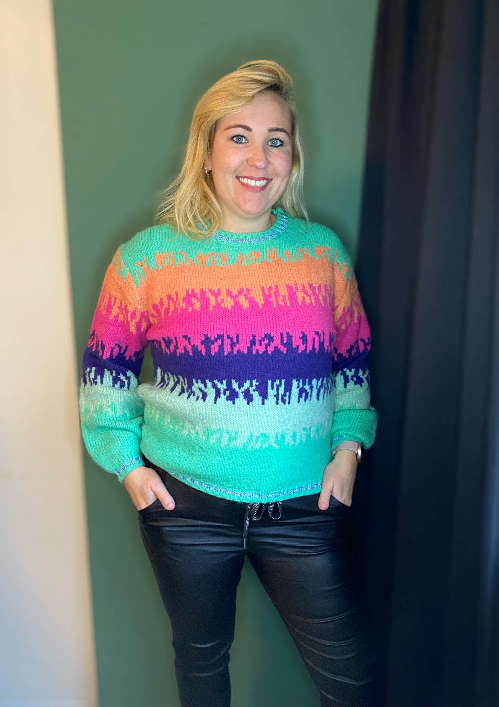 Comfortabele trui met ronde hals en lurex details van Millenium. Deze trui is one size en goed t/m maat 42.