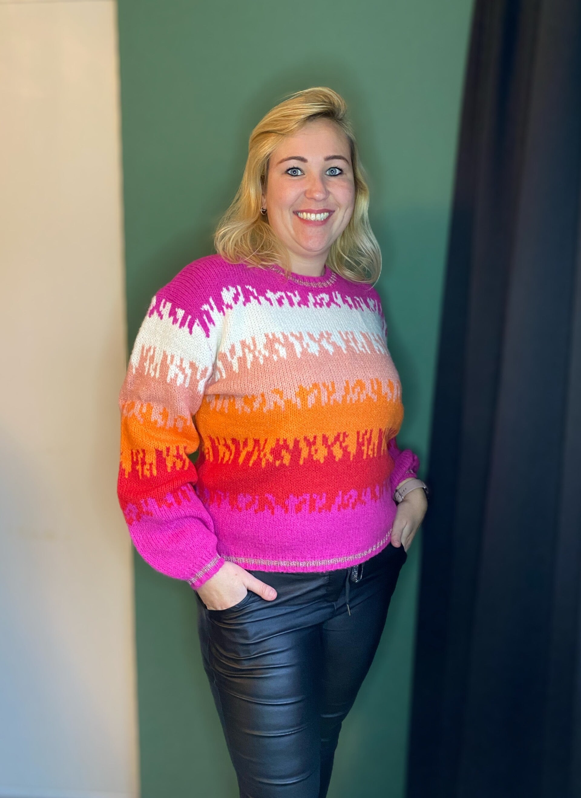 Comfortabele trui met ronde hals en lurex details van Millenium. Deze trui is one size en goed t/m maat 42.
