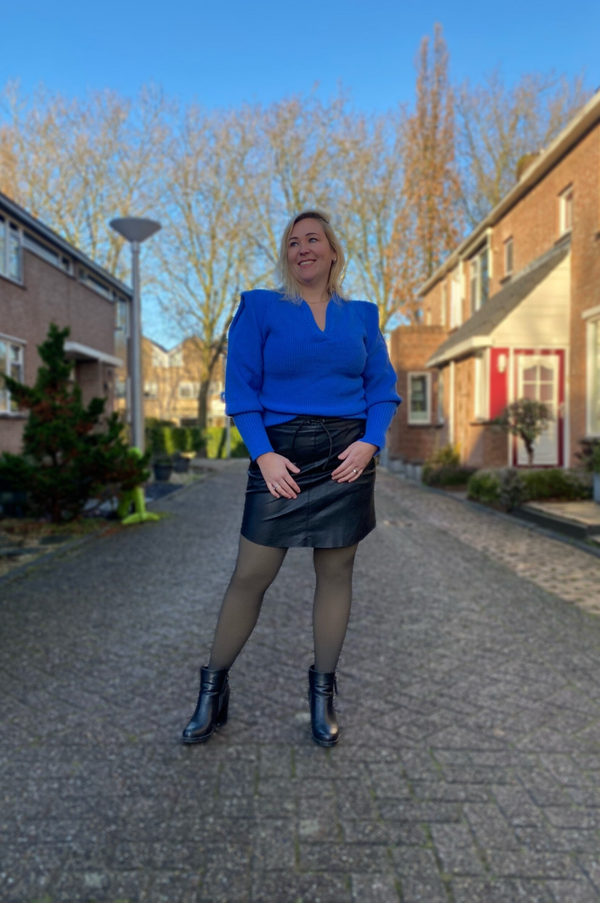 Mooie kwaliteit trui met V- hals en trendy mouw inzet. Dit model is one size en goed t/m maat 42.