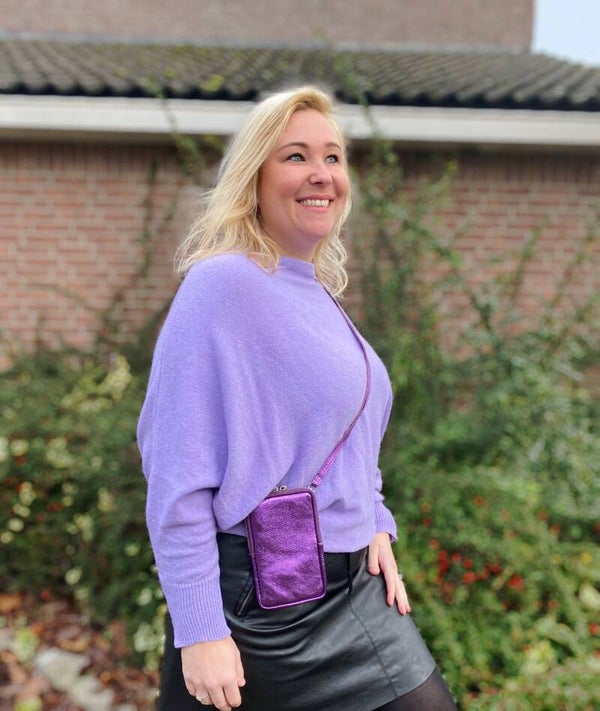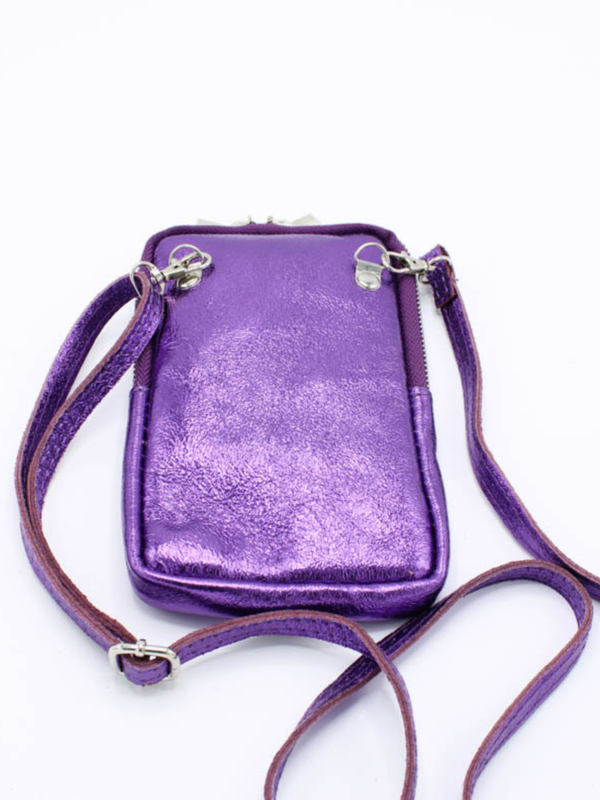 Hoe leuk is deze telefoontas van shiny echt leer! Dit hoesje is geheel gevoerd en afsluitbaar door middel van een rits. De schouderband is afneembaar en verstelbaar.
